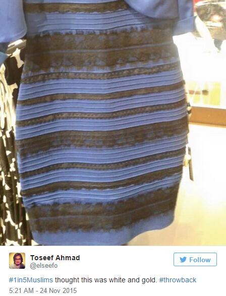 “每五个穆斯林里就有一个认为这裙子是白金色的。”