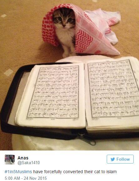 这种毫无根据的纯标题党行为又一次触犯了公众底线,但社交网络对太阳报的反应并不是严肃的批评,“每五个穆斯林里就有一个”(1in5Muslims)迅速成为了今日twitter流行句式,网友们通过造句的方式,将这个标题的新闻属性碾成了渣渣。