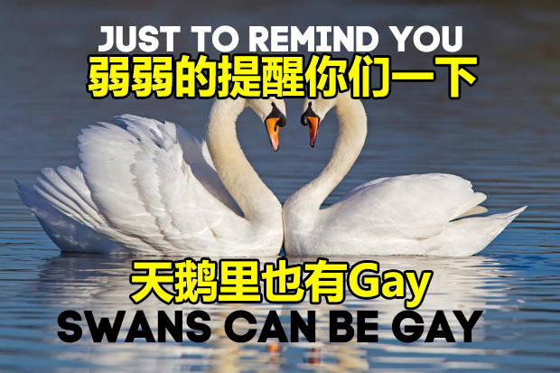 “感谢你老婆,我也是头一次知道天鹅里也有同性恋。”