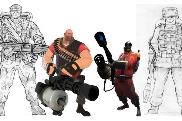 考虑到《军团要塞2》比起初代作品要高得多的巨大人气,可见角色设计对于游戏可谓至关重要。虽然《军团要塞》的早期士兵形象没什么不好,但在这个玩游戏也看脸的时代,“没什么不好”就等于“不好”。