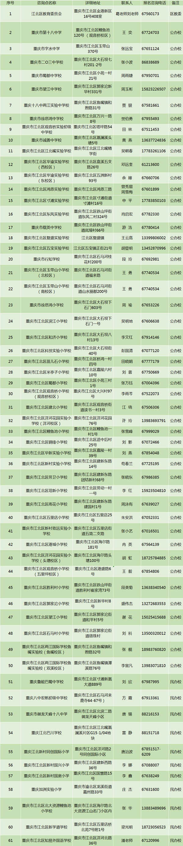 江北区义务教育阶段学校2020年招生报名咨询联系方式