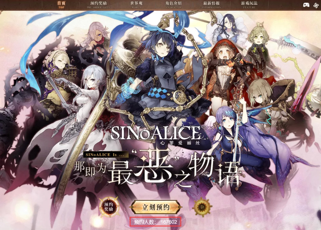 6月10日,B站游戏又正式宣布独家代理黑暗童话沉浸式手游《SINoALICE》(中文译名《心罪爱丽丝》),游戏预约页更是带来了世界观PV、角色介绍、玩法特色等众多信息。此消息一经公布便引起了国内广大ACG爱好者的关注,游戏预约人数也迅速突破16万。