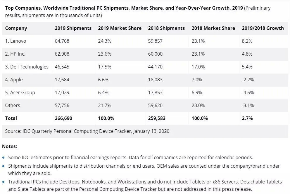 IDC统计的2019年全球PC出货量报告显示,苹果去年PC出货量为1.7684亿台,占据了6.6%的市场份额,位列世界第四。简单点来讲,没有了苹果的支持,英特尔的芯片订单损失大约在7%,不过这还只是轻微的影响,因为英特尔的主战场在Windows市场。