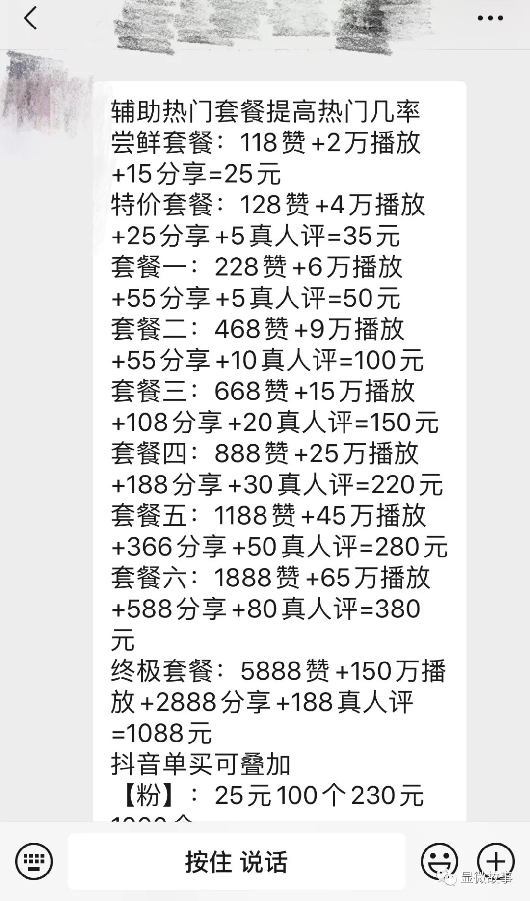 不同的平台我们提供不同的服务,例如抖音粉丝均价在100元/25个,25元则可以享受基础套餐(2万播放+118赞+15个分享)。