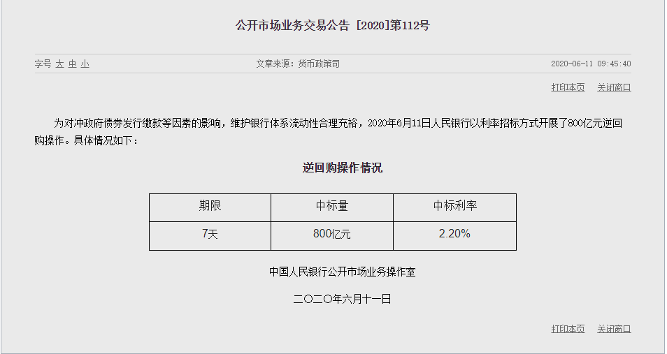 央行公告显示,今日以利率招标方式开展了800亿元7天期逆回购操作,中标利率2.20%,与上次持平。交易员认为,央行近期在公开市场操作力度适中,流动性与资金价格未见要更加宽松迹象,此次逆回购利率持平符合预期。