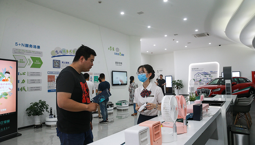 “你们这个智能小风扇挺好的,怎么购买呀?”6月8日,许先生走进宁波北仑新零售服务体验厅办理完业务后,被新零售体验区的智能小风扇吸引。综合服务引导员介绍说:“您用手机扫这个二维码就能直接在‘e享家’客户端上的宁波电宝商城购买现在体验到的家电产品,不仅价格优惠、有售后服务保障,而且在宁波电宝商城下单还能获得电费红包。”“这实在是太方便了,能现场体验,还能马上线上购买。”许先生直接下单购买了2件心仪的家电产品。宁波北仑新零售服务体验厅作为宁波新零售“双店”模式的试点营业厅,除了为客户提供智能家电体验、下单购买、安装的一条龙服务,同时还提供用电咨询、家电监测、安全诊断、用电管家等智能用电服务。