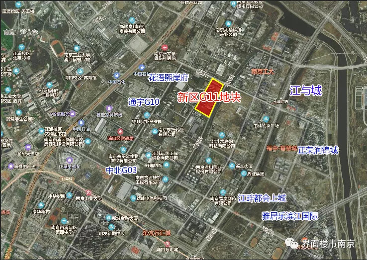 G11地块位于江北核心区,步行至南京工业大学约2.5公里,到浦口万汇城约3公里,与规划11号线七里河西地铁站仅600米。目前,地块周边配套较为匮乏,仅有不少产业加工厂。