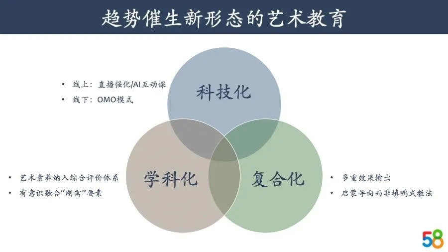 艺术教育是素质教育中空间最大、渗透率最高的领域,但多年以来呈现大市场、小作坊的格局,随着政策指挥棒激励供给和需求侧,以及科技化带来的效率提升,我们认为下一波头部公司将会属于新形态的艺术教育,具体有以下三大趋势: