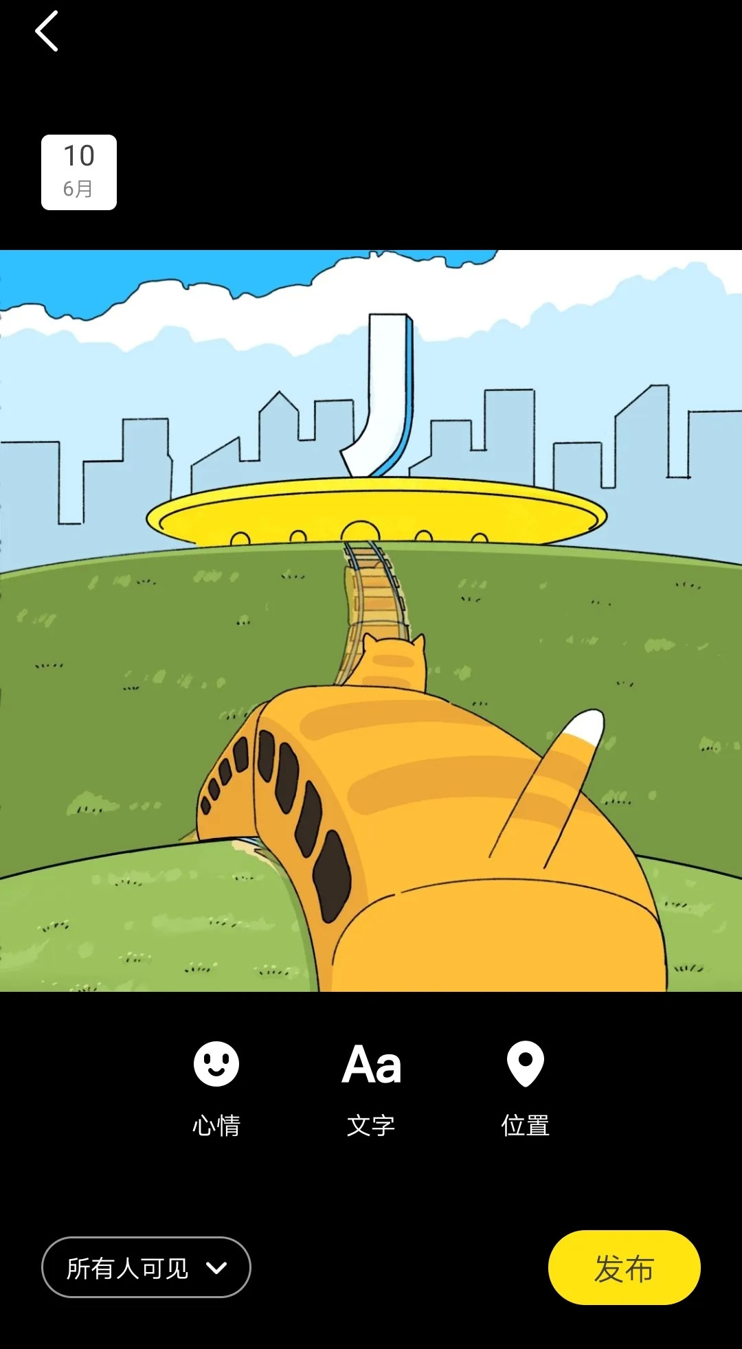 心情日记主打一张照片就是一篇日记,用户可以为照片增添emoji作为日记心情,也可以添加文字和位置,动态可以设为所有人可见或仅自己可见,所有动态在48小时后都仅对自己可见。发布新日记后,头像上的光圈会亮起来。点击即友头像就可以到其个人主页查看日记。