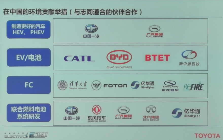 在中国,丰田长期以来与一汽集团和广汽集团合资,同时与TMEC以及各个研究开发机构合作。去年7月,丰田与宁德时代合作开展电池供应和新技术开发,同时开始与比亚迪合作共同开发纯电动车型。10月开始与新中源探讨加强合作。