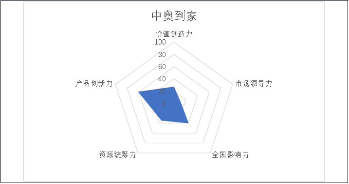 在市场领导力、全国影响力、资源统筹力等3个维度中,中奥到家均处于行业中游,这表明其在整体营收与规模、全国布局及挖掘现有资源和资产潜力方面达到行业平均水平。