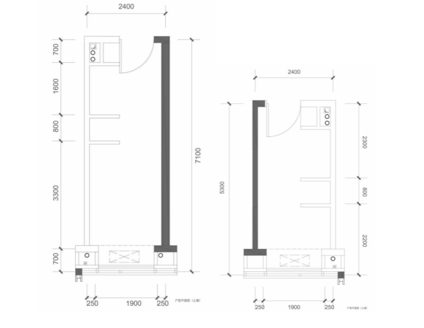 19㎡的极微户型位于4号楼,共32层,其中1-2层为万科自持部分的商业,4-24层为7梯51户,25-32层为4梯32户,层高3.6米。主力户型分为两种,约19平米和约27平米。两种户型设计均呈长条形,除进深差异外,设计基本一致,开间也同样为2.4米。