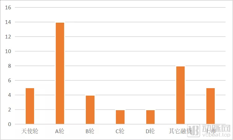 从融资轮次来看,51家企业中,查询到融资轮次的企业共有40家,其中既包括新兴创业公司,也有后期布局液体活检领域的上市公司。可以看出,大部分企业都处于融资早期阶段,14家企业正处于A轮融资,处于天使轮融资和B轮融资的企业分别为5家、4家,未来这一市场还有着较大的成长空间。