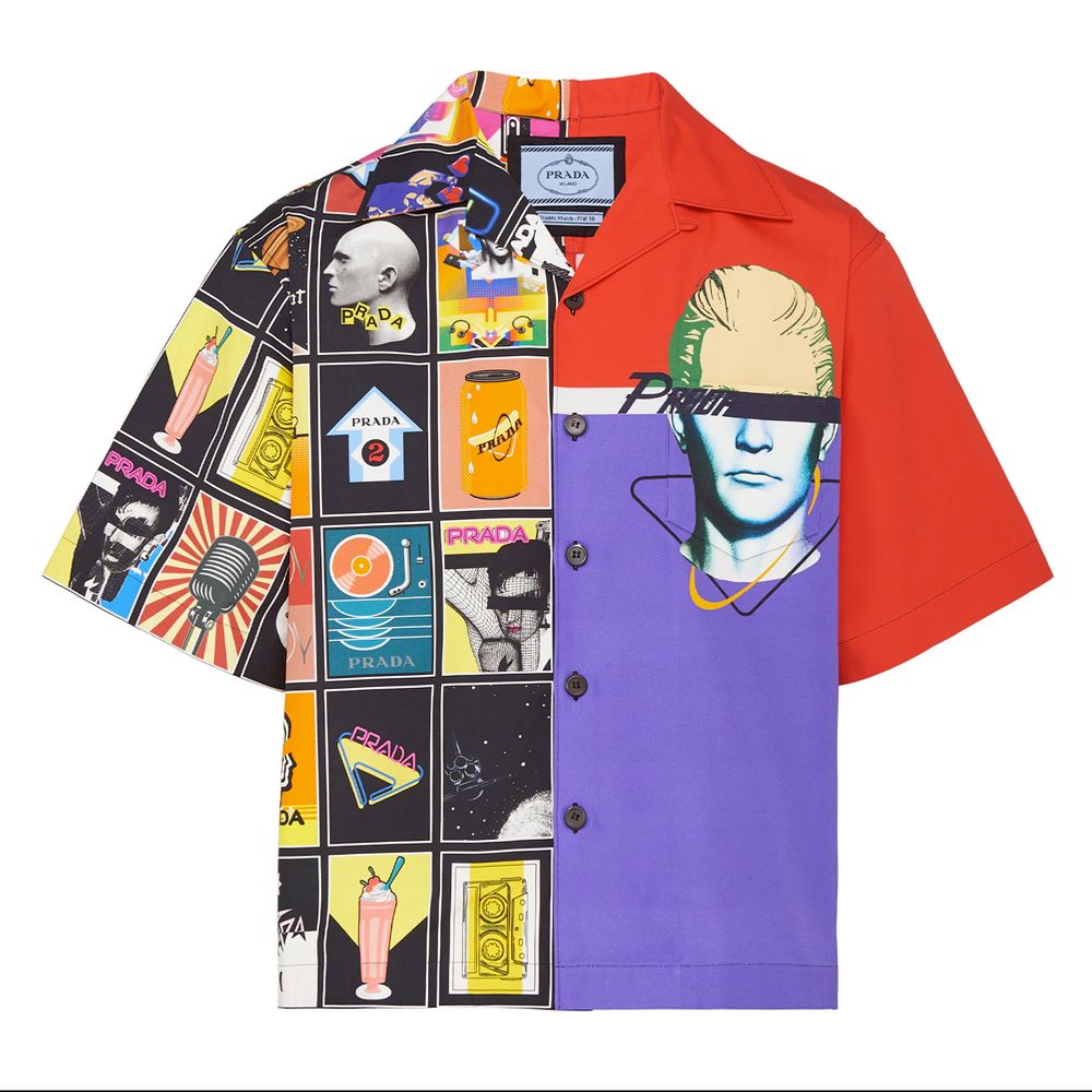 古巴领式剪裁衬衫也被欧美服装设计师用于连接过去和当下潮流,随着近几年老爹鞋、夹脚拖、草编帽和手袋等复古配饰卷土重来,大印花古巴衬衫也大行其道。在Prada2020春夏系列中,这个意大利奢侈品牌开会在高级成衣当中融入更强的实用性,在舒适的古巴衬衫融入具有未来感风格的印花。