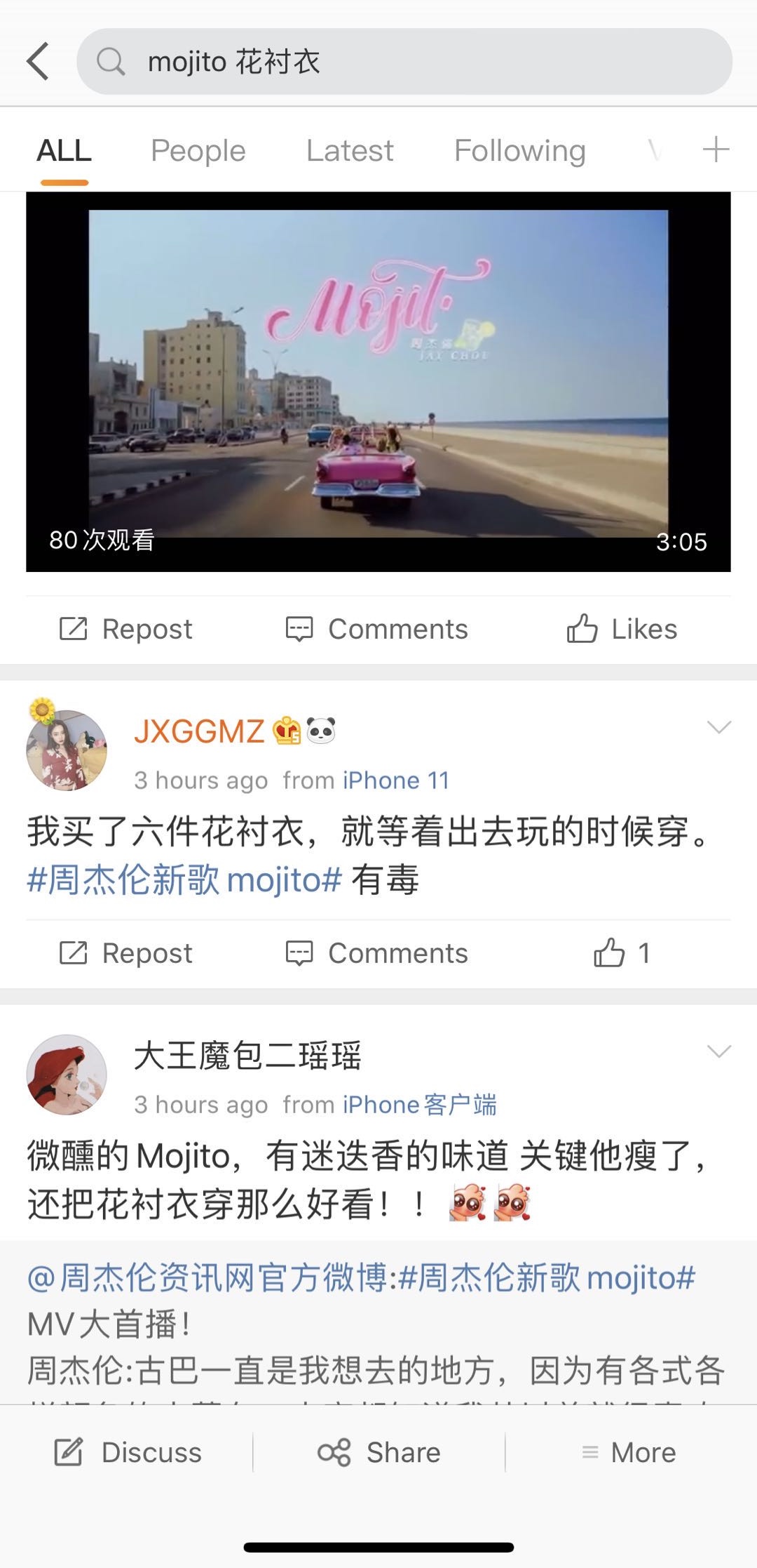 而同样火爆全网的,还有周杰伦在《Mojito》音乐短片k当中换了一件又一件的古巴花衬衣。