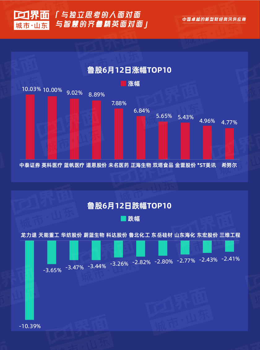 今日鲁股总结:6月12日,山东省内沪深股票有87只个股上涨,117只下跌,9只与上一个交易日收盘价持平;