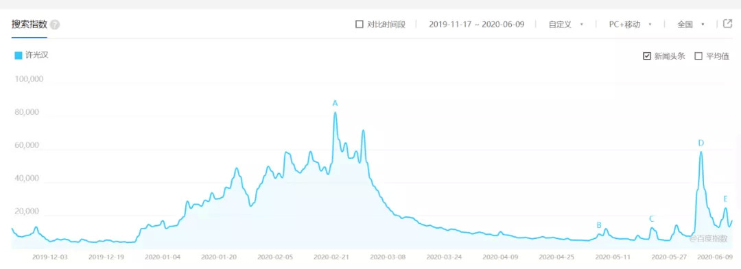 不仅如此,百度指数显示,许光汉的搜索量在剧播期间有了明显上涨,并多次创造小高峰。经过一段时期的平静后,许光汉最近又迎来了热度的回升,并在成为娃哈哈代言人的当天达到近期峰值。
