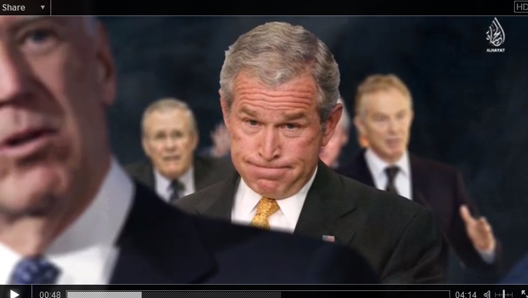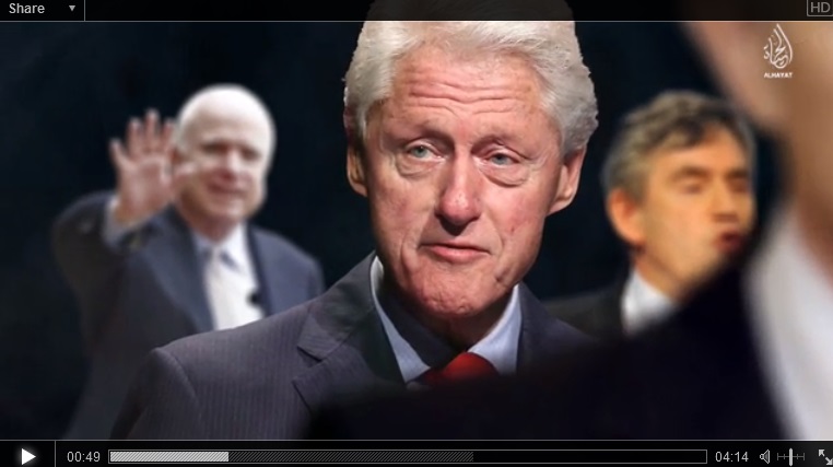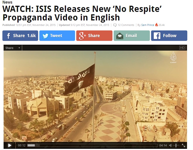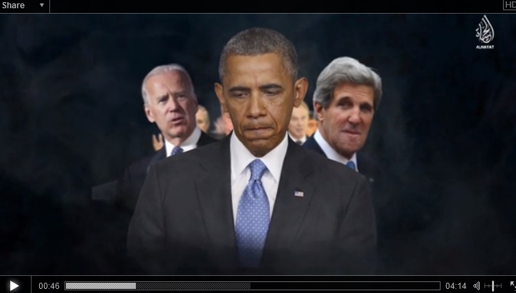 在这段影片中,“伊斯兰国”称,其“领土”已经超过24万平方公里,比英国还要大,相当于8个比利时,30个卡塔尔。还特写了三任美国总统,奥巴马、小布什和克林顿的头像。