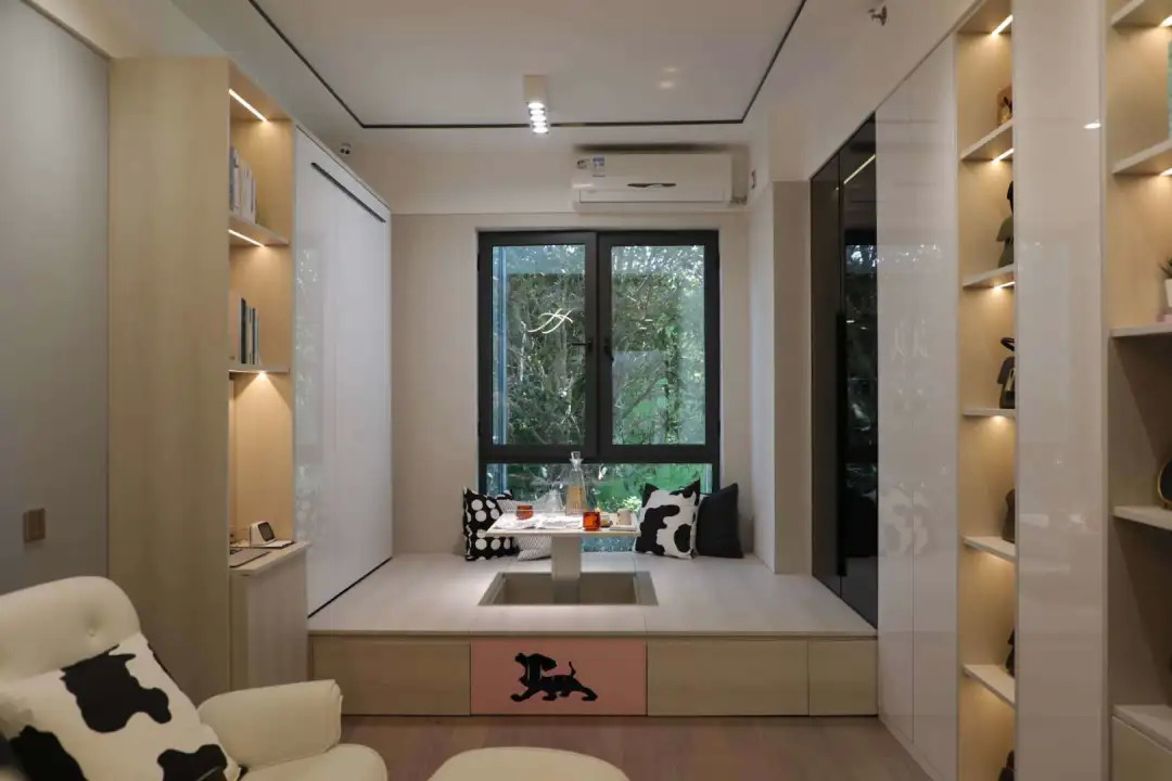 采用日式LDK的户型设计,打造了个性化玄关、全屋橱柜收纳、壁床、榻榻米、折叠书桌、电视墙柜子等百变家具,功能多变。