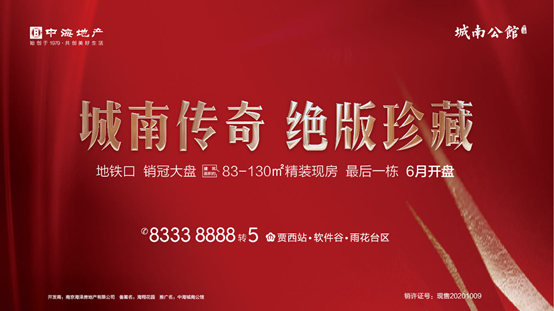 另外,2020年1-5月主城销冠大盘,中海·城南公馆,6月加推最后1栋,建筑面积约83-130㎡,精装现房,1站河西,4站南站。城南传奇,绝版珍藏!