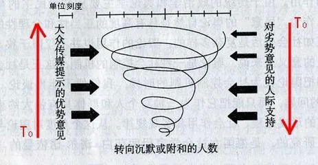 这就像一个螺旋的上下端,赞同少的一方越渐向下萎缩,赞同多的一方逐渐向上扩张,最终形成一个双向螺旋发展的过程。