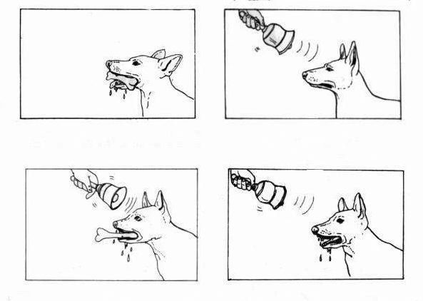 但他同时在喂狗食的同时,疯狂的摇甩小铃铛。结果一段时间后,实验结果发现即便不用食物只用摇起铃铛,狗也会分泌大量唾液,这就是条件反射。