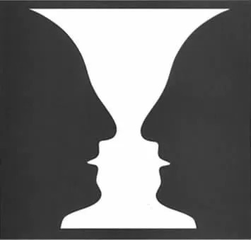例如注视下图白色的部分,你看到的是一个奖杯,当你注视黑色时,你看到的是两个人脸。