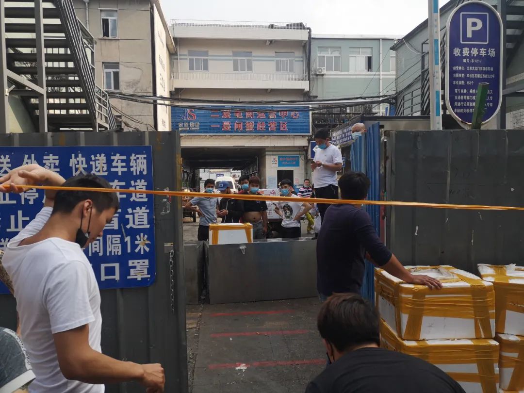 在新发地海鲜批发市场11公里外的京深海鲜市场外则是另外一番景象。京深海鲜市场外停满了前来运货的车,这些车要以最快的速度把货物送往车站、飞机场等,再送往全国各地。虽然京深海鲜市场大门外竖起了一道黄色的封锁线,大门也紧闭,但大门中间,留了一个可以同时容纳两个人的通道,商户和司机正在忙不迭将储存在海鲜市场内的海鲜打包、搬运到各家货车上。上万吨的海鲜需要在13日凌晨12点前被搬出来,有卖淡水鱼的商户在12日下午临时联系他在全国各地的客户,提出以成本价抛售,13日上午就快速处理完了在海鲜市场的存货。更多的商户则因一时找不到愿意接手的合适买家,陷入苦恼。