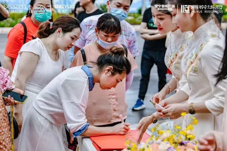 一场阵雨过后,天空如约放晴,傍晚18:30,安宁吾悦广场·吾悦华府美学样板园区开放活动现场人头攒动。媒体、嘉宾、客户们满怀期待,早早来到现场,希望能提前一睹安宁醉美实景样板园区和华美样板间的庐山真面目。
