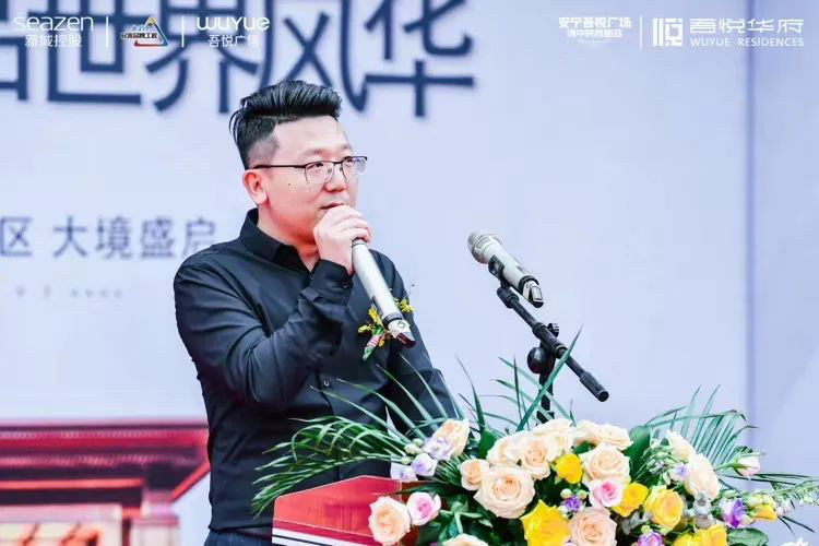 在主持人绘声绘色的开场介绍后,吾悦华府项目营销副总经理肖楠上台致辞,为我们详细讲解了吾悦华府在人居设计上的亮点优势,以及新中式园林的匠心独运,富有感染力的发言,让现场媒体、宾客们沉浸其中,并报以热烈掌声。