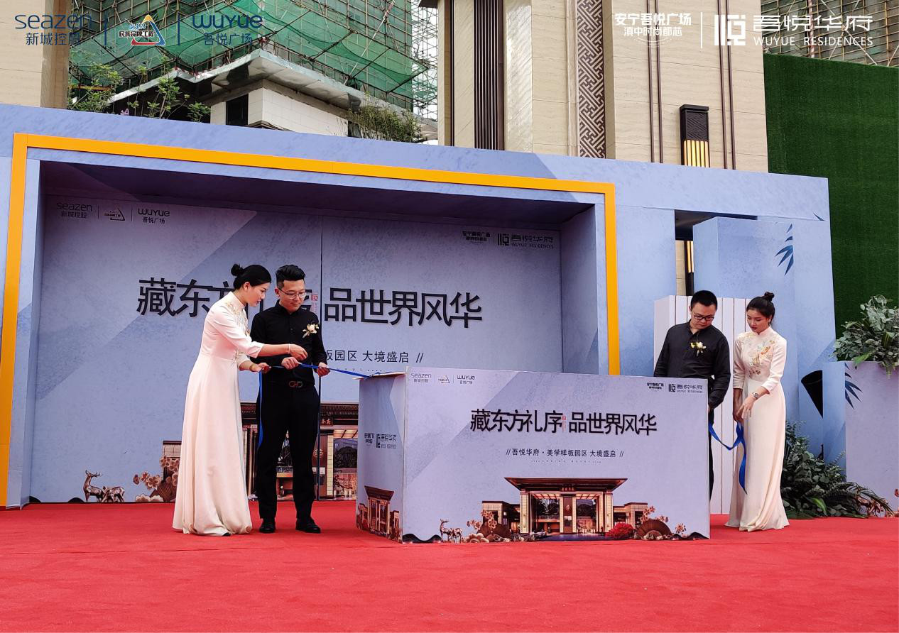 随后,现场领导及嘉宾共同为吾悦华府美学样板园区开放盛典开门启幕。在全场嘉宾的共同见证下,营销副总经理肖楠与设计副总经理赵江共同宣布吾悦华府美学样板园区正式对外开放。
