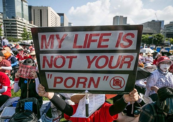 实际上,很多看似你情我愿的色情生意背后,都可能存在女性受到威胁或其他形式的暴力。譬如,韩国就曾爆出,有偷拍者在女性上厕所或换衣服时进行偷拍,然后将影像发布在色情网站上。因此,长期以来,首尔几乎所有公共洗手间中的小洞都被纸巾、贴纸、胶带等堵住。国内屡见不鲜的“裸贷”“裸聊”也是典型的例子。