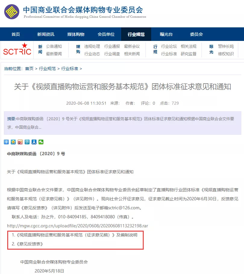 据悉,标准意见稿是根据中国商业联合会的文件要求,由中商联媒购委起草制定的首部直播购物行业团体标准,是对直播购物行业的指导性文件。