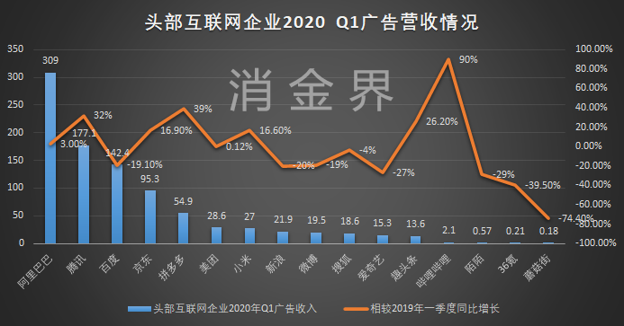 可以看到,主流互金金融机构,在投放上都缩减了预算。那么他们的渠道方,各大互联网媒体平台,2020年一季度广告营收业务如何呢?