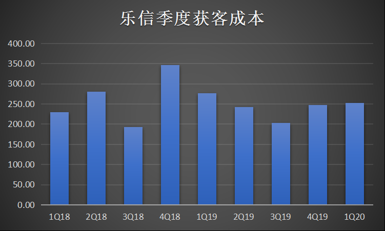 目前乐信的获客成本,远低于2018年第四季度峰值。