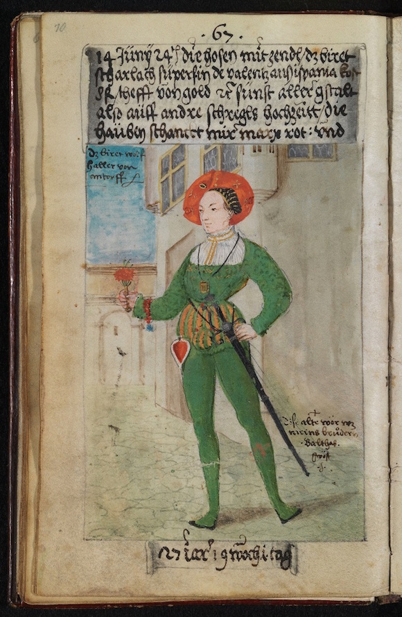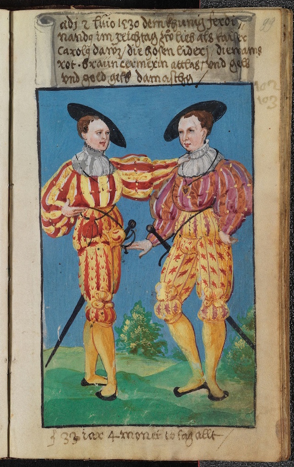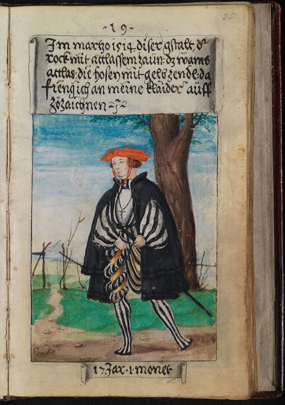 剑桥大学历史学家 Ulinka Rublack 最近介绍了一本十六世纪“时尚博主”记录他的着装生活的书。书籍的主人 Matthäus Schwarz 是五百年前来自德国南部一个叫奥格斯堡(Augsburg)的地方的男人。平日里,他只是一个贸易商行的会计总管。但就是这个会计师,却制作出了历史上第一本完全关于时装的书籍。这本包含了 137 张图画的书里,记录了他从出生到 63 岁的独特穿着。