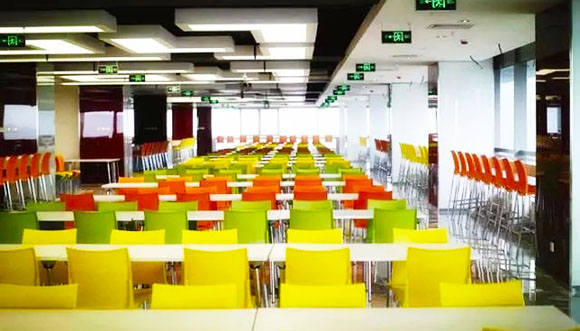 京东的食堂集中分布在中间B座,想知道二层到六层5个餐厅里哪个人少、不拥挤,可以使用“京东ME”看看人流情况。食堂现场实况30秒刷新一次,如果直观的现场图无法令你判断人多少的话,它还能给你个数字统计。比如右上角显示“74-886”就是食堂886个位置现有74人。