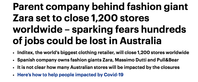 Zara母公司Inditex一个季度,就亏损人民币32亿元,是史上首次净亏损。