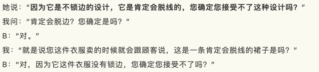 有个网友的衣服洗脱线后,客服的回答竟然是:“我们就是一次性的。”、“我们是肯定会脱线的。”