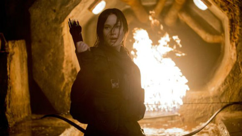 《饥饿游戏》最终章在上周末拉开了帷幕,让期待已久的观众大饱了眼福。这个影片是在感恩节饱餐一顿后必看的。那种感觉就好像一位品尝饕餮大餐之后的国会议员惊悚地看着屏幕上的起义暴动,然后回过神来,发现虚惊一场,还在影院的座位上。本片另一大看点是这将是女星詹妮弗·劳伦斯最后一场出演这位反叛代表“Katniss Everdeen”。