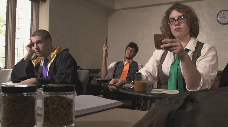 这是一间由“真人角色扮演”(Live Action Role Play)的魔法学校。也就是说,把类似《哈利·波特》的魔幻故事,搬到现实生活来演。