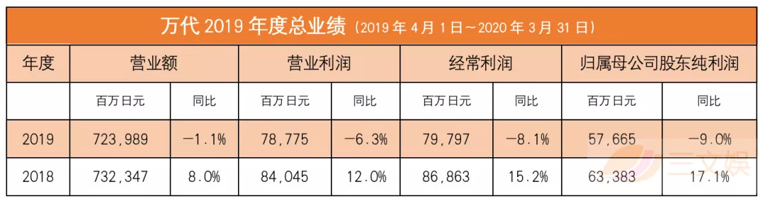 归功于万代在18年4月制定的3年中期计划“CHANGE for the NEXT 挑战·成长·进化”,即便第四季度受到疫情影响,万代19年度的总业绩亦呈现出较为稳定的高水准表现。其营业额达到了7239.89亿日元(467.82亿元人民币),同比下降1.1%;营业利润为787.75亿日元(50.9亿元人民币),同比减少6.3%;净利润为576.65亿日元(37.26亿元人民币),同比下降9%。