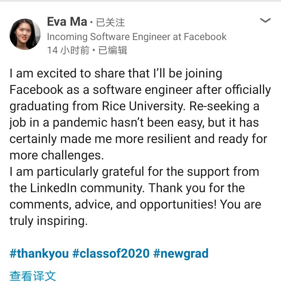 一个月之后,Eva拿到了Facebook的offer。