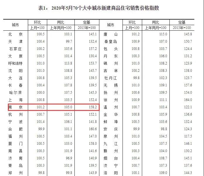 6月15日,国家统计局最新发布了2020年5月份70个大中城市商品住宅销售价格变动情况统计数据。其中,5月南京新房价格环比上涨1.2%、同比上涨5%,二手房价格环比上涨0.4%、同比上涨5.3%。