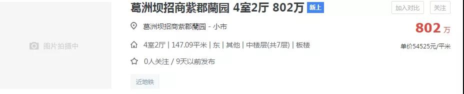 紫郡蘭园近期新上的一套约147㎡房源,业主报价54525元/㎡,总价高达802万。