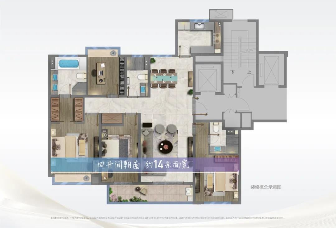 除172㎡大户型外,项目还打造了127㎡三房两厅两卫、144㎡四房两厅两厅全能户型,空间尺度感与生活舒适性兼备,充分满足二孩独立、三代美满等改善性需求。