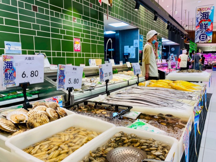 零售商的海鲜区域也是这样惨淡。界面新闻走访永旺、永辉超市等水产区域,工作人员不断强调虾蟹类均为国产货,永旺海鲜水产区域在6月12日还设立了“海鲜日”,但都无人问津。