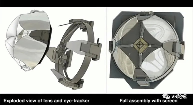 简单解释,非扩瞳的情况就是当你在佩戴VR头显时,清晰的图像往往只是集中在最中心位置视点,如果眼睛位置改变了,画面就会变得十分模糊。可以想象,未来我们所佩戴的VR眼镜如果是基于衍射光波导或者几何光学微透镜阵列,那么我们的眼睛在任何位置注视画面都是相同畸变清晰的图像。