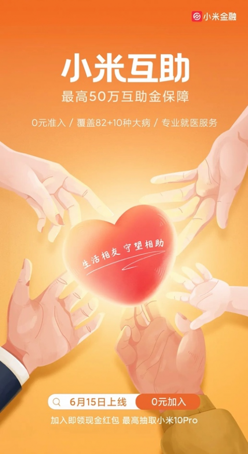 据悉,小米金融中小米互助是本着“生活相友,守望相助”精神发起的大病互助计划,现在0元即可加入无需付费,加入后如患病可申请最高50万元的互助金。