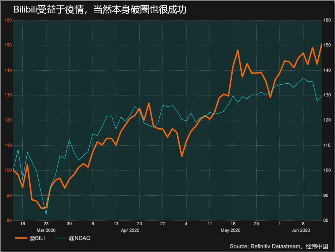 Bilibili和腾讯一样,都受益于疫情,Bilibili从2019年开始的“破圈”举措,成功扭转了小众的公众印象,随着B站跨年晚会和《后浪》公益影片,成功覆盖了从15到35岁的主流用户群,这极大扩展了Bilibili的影响力和商业价值。